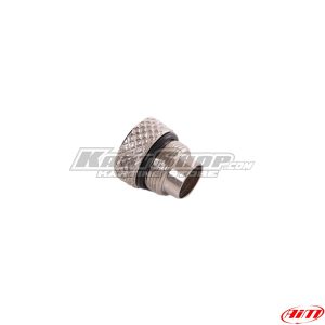 Hladilnik goriva v modri barvi. Hladilnik goriva je nameščen kot člen v priključku cevi za gorivo in hladi gorivo.