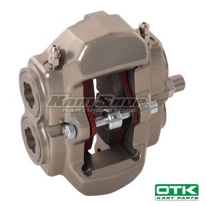 Celotna sprednja zavorna čeljust za sistem BSS, ki se uporablja na kartih KZ in Rotax DD2 od leta 2016 do danes. Prihaja v kompletu priložene zavorne ploščice.nDesna strannOriginalni OTK del